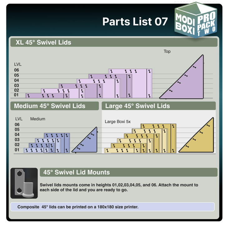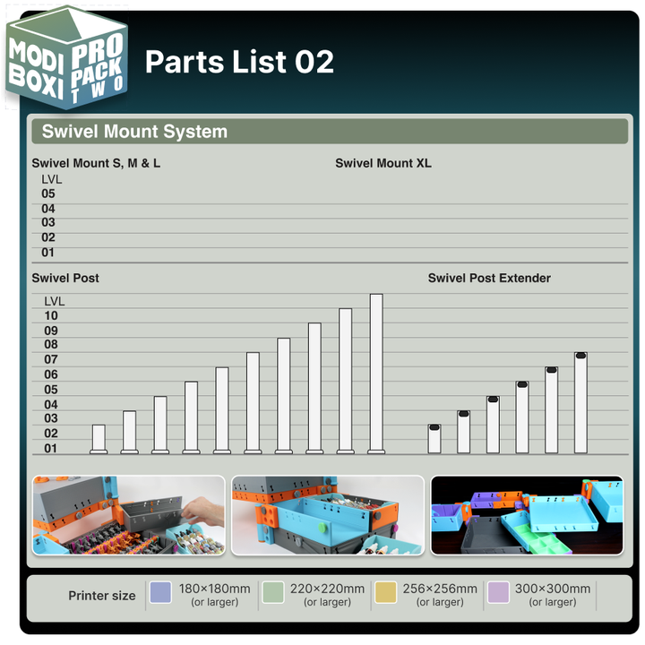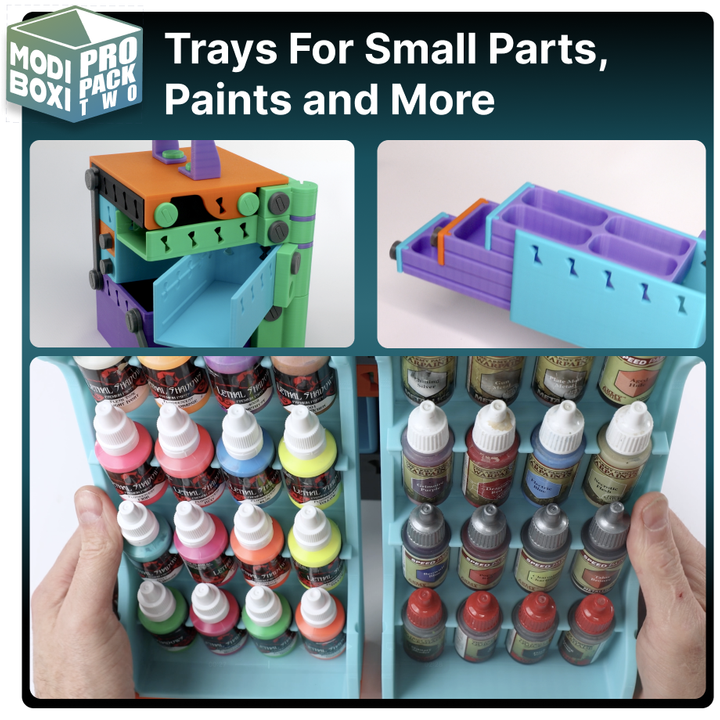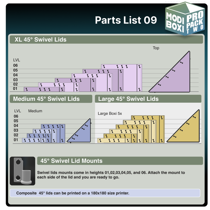 The Pro Pack 2 Expansion is a significant leap forward for your Modi Boxi builds. At the center of the pack, is the Modi Swivel System, which allows you to rotate boxes, lids, and even entire mid-sections—giving you fast, organized access to your gear while keeping your builds secure and compact. Combined with updated lids, extenders, and half-box formats, this pack brings more options and customization than ever before.